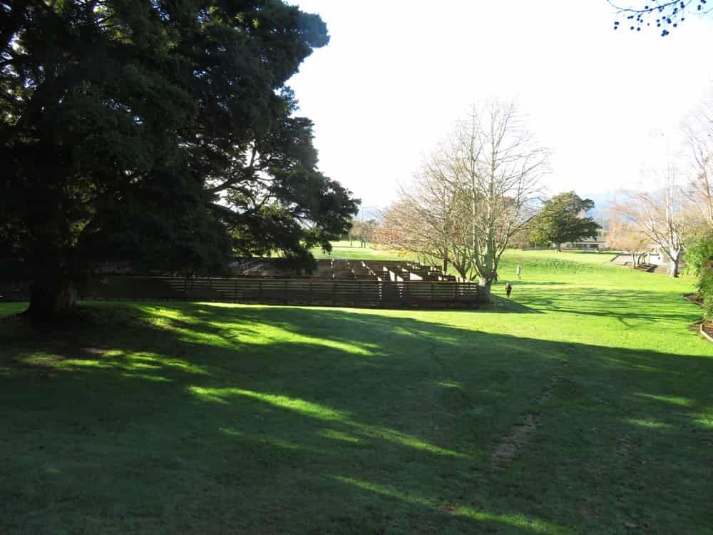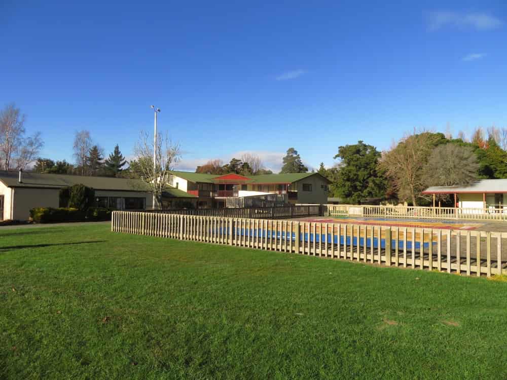 Our friends are living at a Christian campground, so we had a quick tour the next morning before we left. Here is the main community building, with the dining room/lounge on the far left, the (beautifully large!) kitchen near the middle of the building, and a three-bedroom flat on the right wing for families or “camp mums” with their children. The white-roofed building off to the right is the beginning of a long row of cabins, and the fenced-in area holds a massive blow-up pillow for the children to play on!