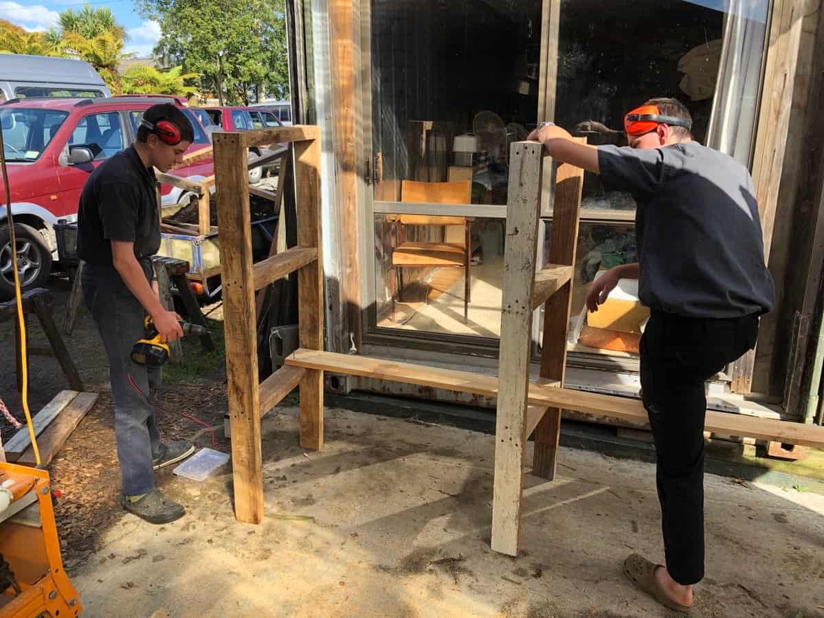 Last weekend, my brothers and I had fun working together on a project—building shelves for our shipping container that we use for storage! We’ve also had guests in there at times, but it’s recently gotten almost too messy to use as a guest room. Shelving will really help. I got to be “hammer hand” for them, although I told them later that I wouldn’t recommend they hire me for the job…. 🙂